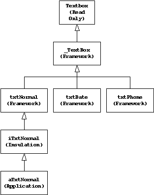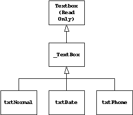 When you put a textbox class in another container class, you are not creating a subclass of the textbox, you are creating an instance of it. A subclass of your container will contain textboxes that inherit from your base textbox class, not from changes you make in the textboxes in the superclass container.