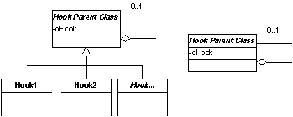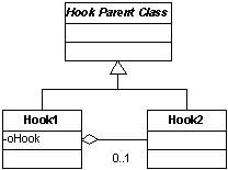 In Codebook, toolbar navigation buttons call a business object class (cBizObj) which mediates in a one-way direction between the form (of class cBizObjForm) and the data behavior object (of class cDataBehavior). This simplifies the programming interface — only the cBizObj class protocols need be known — and allows for the easy substitution of the data behavior implementations from the cDatabehavior class. Note that several bridge patterns are evident here separating programming interfaces from implementations.